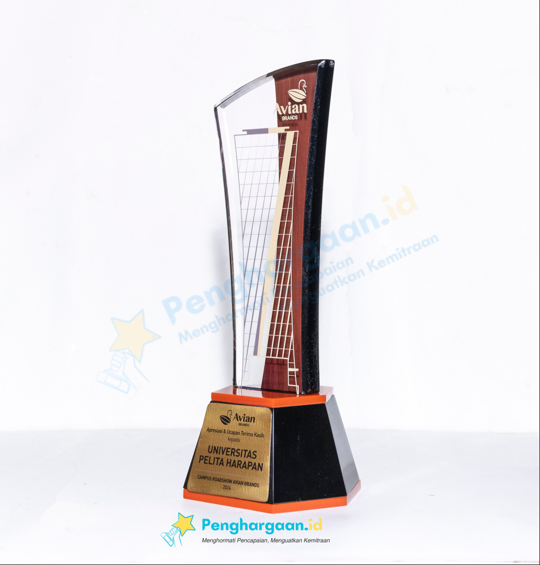 Dalam rangka memeriahkan Avian Brands Campus Roadshow, plakat apresiasi yang didesain khusus menjadi highlight acara. Plakat ini tidak hanya sekadar penghargaan, tetapi juga simbol kebersamaan dan kerja keras. Terbuat dari material akrilik kombinasi kaki resin, plakat ini memberikan kesan modern dan elegan.