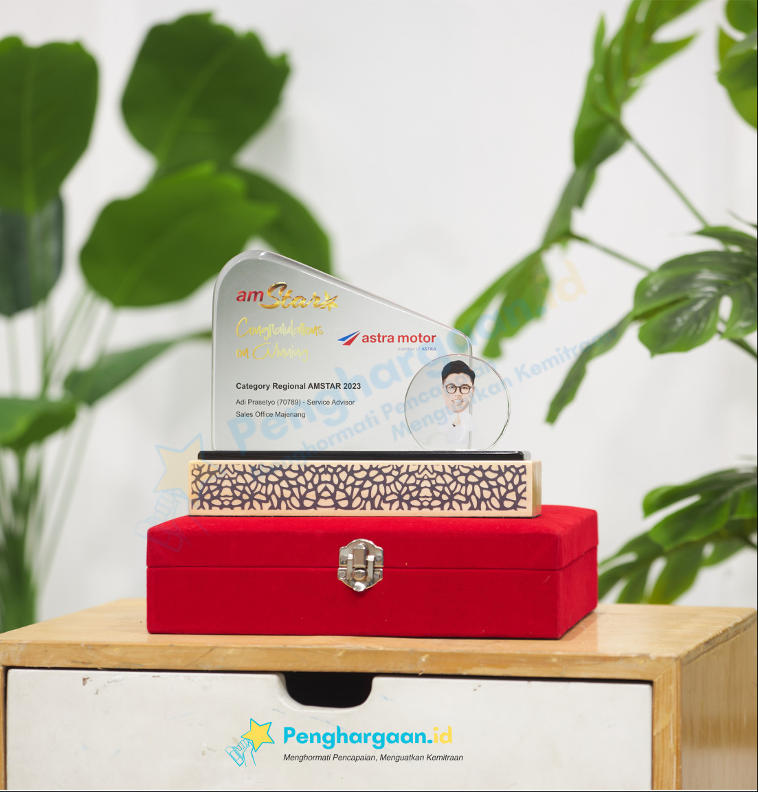 Plakat Penghargaan Astra Motor AMSTAR 2023 merupakan simbol pengakuan atas prestasi dan dedikasi yang luar biasa dalam industri otomotif. Dibuat dengan menggunakan bahan akrilik bening berkualitas tinggi, plakat ini memberikan kesan elegan dan modern yang cocok untuk berbagai kesempatan penghargaan.